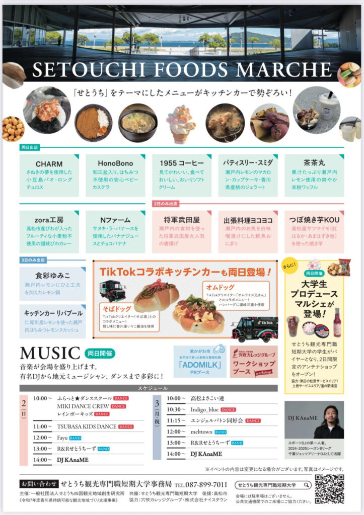 せとうちの“食と観光”がテーマのイベントで、美味しいグルメや多彩なブースとともに、ダンスステージを楽しんでいただければ嬉しいです。