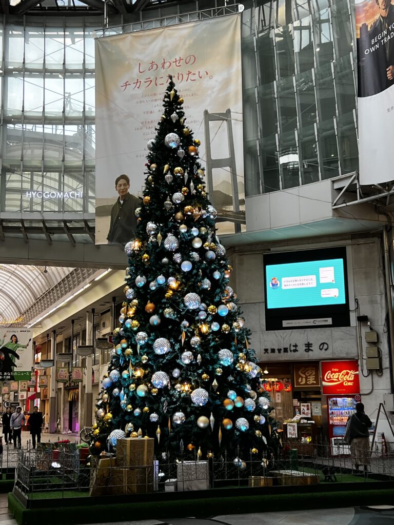 クリスマスムードいっぱいの商店街を抜け、丸亀町レッツホールへ向かいました。