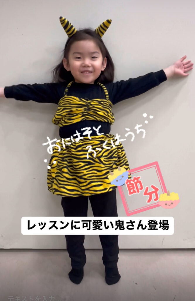 鬼の仮装をしたキッズが参加してくれて、スタジオが一気に節分ムードに!