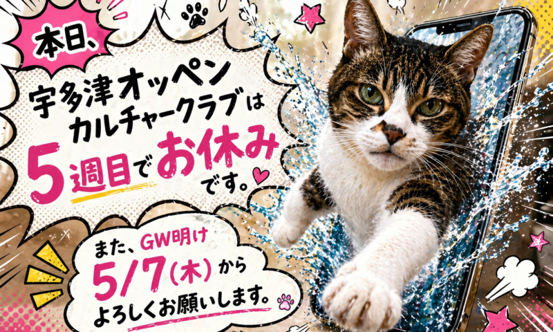 レッスン 本日、オッペンカルチャークラブは5週目でお休みです。 2026.4.30 宇多津オッペンカルチャークラブは 5週目で休館日となっております。 見学・体験レッスン受付は 5/7(木)からとなります。 よろしくお願い致します。 キッズたちは、5/3(祝)AM10:00〜 まるがめお城まつり・お城村ステージに出演予定です。 晴れますように! ☆Move Forward Dance Forever☆ 投稿者: takahashi レッスン GW休講のお知らせ 前の記事